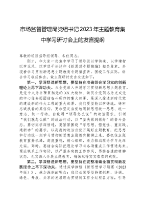 市场监督管理局党组书记2023年主题教育集中学习研讨会上的发言提纲.docx