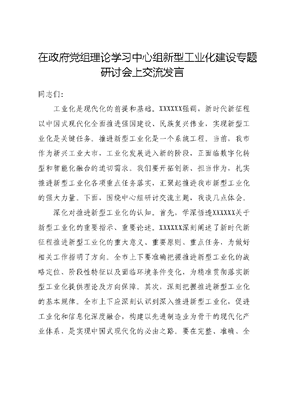 在政府党组理论学习中心组新型工业化建设专题研讨会上交流发言.doc