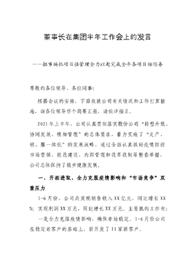 董事长在集团半年工作会上的发言——拓市场抓项目强管理全力以赴完成全年各项目标任务.docx