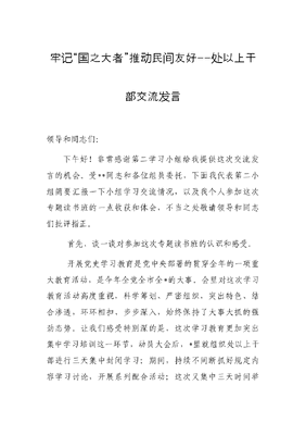 牢记“国之大者” 推动民间友好--处以上干部交流发言.docx