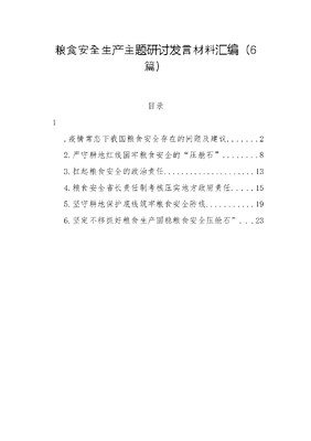 (6篇)粮食安全生产主题研讨发言材料汇编.docx