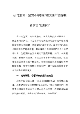 研讨发言:坚定不移抓好粮食生产固稳粮食安全“压舱石”.docx