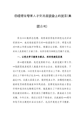 总经理在专家人才交流座谈会上的发言(集团公司).docx