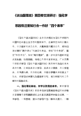 《谈治国理政》第四卷交流研讨:强化学思践悟 注重知行合一 作好“四个表率”.docx