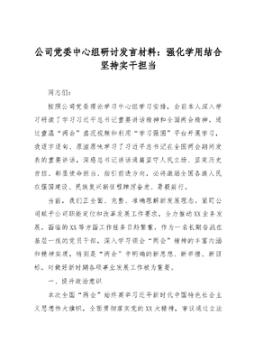 公司党委中心组研讨发言材料:强化学用结合坚持实干担当.docx