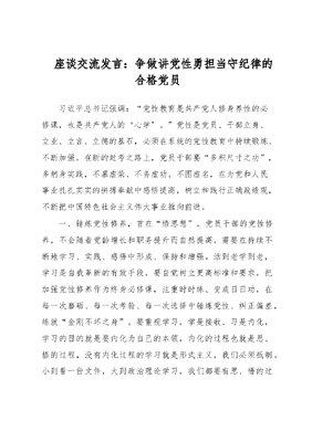 座谈交流发言:争做讲党性勇担当守纪律的合格党员.docx