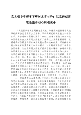 党员领导干部学习研讨发言材料:以党的创新理论+滋养初心引领使命.docx