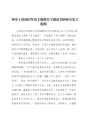 领导干部2023年度主题教育专题读书班研讨发言提纲.docx