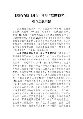 主题教育研讨发言:用好“思想宝库”,强化思想引领.docx