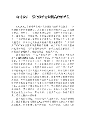 研讨发言:强化政治意识,提高政治站位.docx