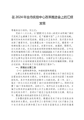 在2024年全市疾控中心改革推进会上的汇报发言.docx