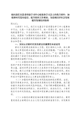 组织部长在县委理论学习中心组集体学习会上的发言材料:加强新时代党的建设,提升组织工作质效,为县域经济社会发展提供坚强组织保障.docx
