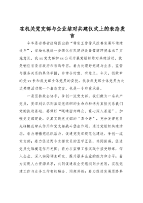 在机关党支部与企业结对共建仪式上的表态发言.docx