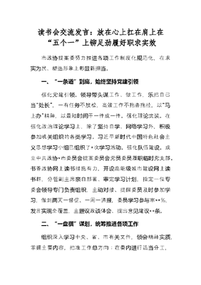 读书会交流发言:放在心上扛在肩上在“五个一”上铆足劲履好职求实效.docx