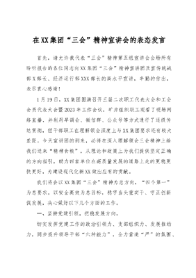 在XX集团“三会”精神宣讲会的表态发言.docx