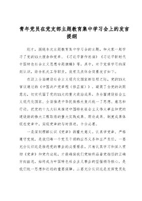 青年党员在党支部主题教育集中学习会上的发言提纲.docx