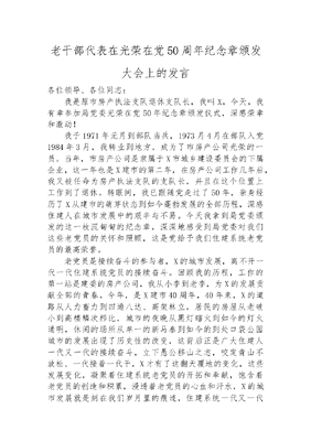 老干部代表在光荣在党50周年纪念章颁发大会上的发言.docx
