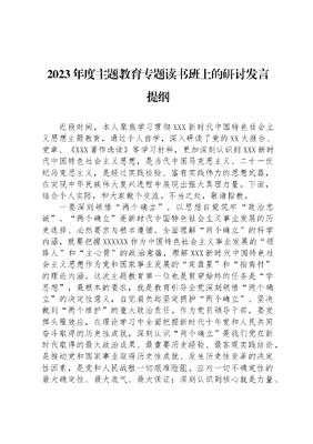 2023年度主题教育专题读书班上的研讨发言提纲.docx