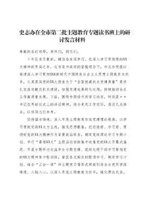 史志办在全市第二批主题教育专题读书班上的研讨发言材料.docx
