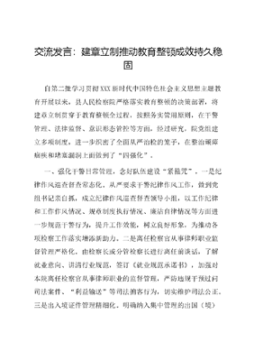 交流发言:建章立制 推动教育整顿成效持久稳固.docx