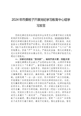 2024年市委班子开展党纪学习教育中心组学习发言.docx