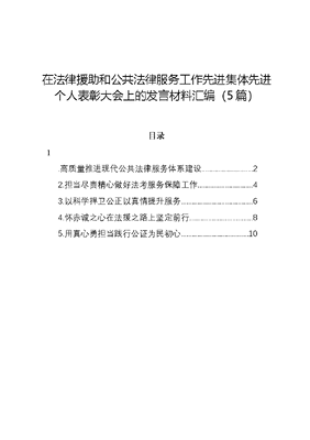 (5篇)在法律援助和公共法律服务工作先进集体先进个人表彰大会上的发言材料汇编.docx
