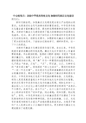 中心组发言:汲取中华优秀传统文化,加强时代廉洁文化建设.docx