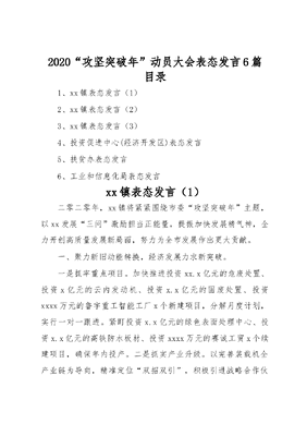 (6篇)“攻坚突破年”动员大会表态发言.docx