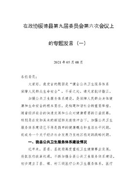 在政协绥德县第九届委员会第六次会议上的专题发言(一).docx