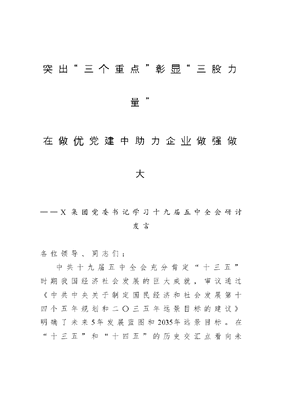 X集团党委书记学习十九届五中全会研讨发言.docx