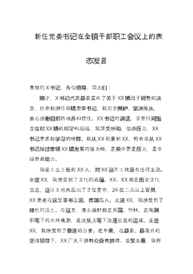 新任党委书记在全镇干部职工会议上的表态发言.docx