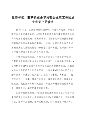 党委书记、董事长在全市民营企业家宣讲团成立仪式上的发言.docx