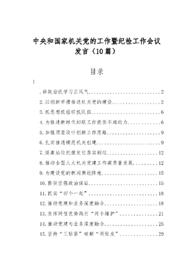 (10篇)中央和国家机关党的工作暨纪检工作会议发言.docx