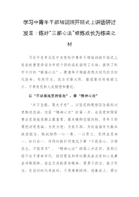 学习中青年干部培训班开班式上讲话研讨发言:练好“三部心法” 修炼成长为栋梁之材.docx