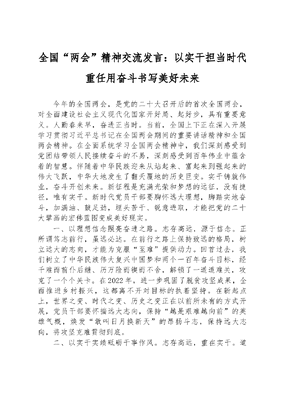 全国“两会”精神交流发言:以实干担当时代重任+用奋斗书写美好未来.docx