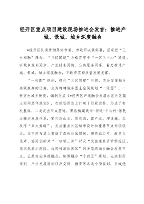 经开区重点项目建设现场推进会发言:推进产城、景城、城乡深度融合.docx