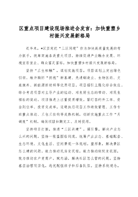 区重点项目建设现场推进会发言:加快重塑乡村振兴发展新格局.docx