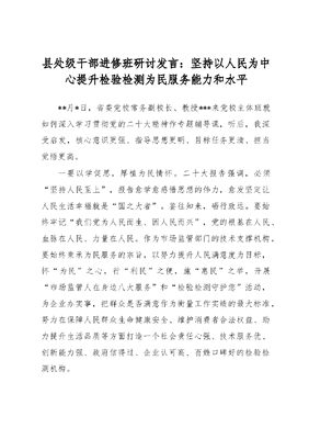 县处级干部进修班研讨发言:坚持以人民为中心提升检验检测为民服务能力和水平.docx