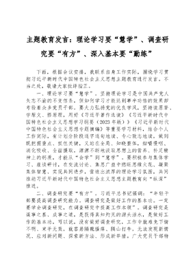 主题教育发言:理论学习要“慧学”、调查研究要“有方”、深入基本要“勤练”.docx
