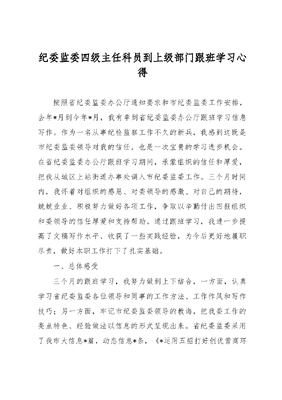 纪委监委四级主任科员到上级部门跟班学习心得.docx