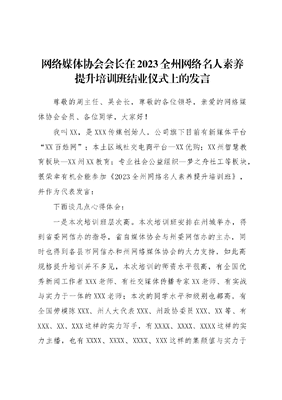 网络媒体协会会长在2023全州网络名人素养提升培训班结业仪式上的发言.docx