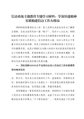 信访系统主题教育专题学习材料:学深悟透精神实质构建信访工作大格局.docx