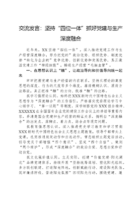 交流发言:坚持“四位一体”抓好党建与生产深度融合.docx