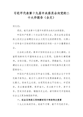习近平代表第十九届中央委员会向党的二十大作报告(全文).docx