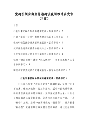 (7篇)党建引领自由贸易港建设现场推进会发言.docx