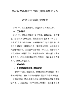 发改局在县政府工作部门单位年初亮目标政务公开活动上的发言.docx