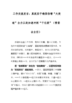 工作交流发言:真抓实干确保倍增“大突破”全力以赴加速冲刺“千亿级”(管委会主任).docx