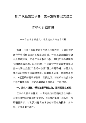 抓牢队伍 筑实根基,充分发挥基层党建工作核心引领作用——在全市基层党建工作座谈会上的发言材料.docx