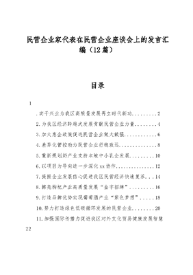 (12篇)民营企业家代表在民营企业座谈会上的发言汇编.docx
