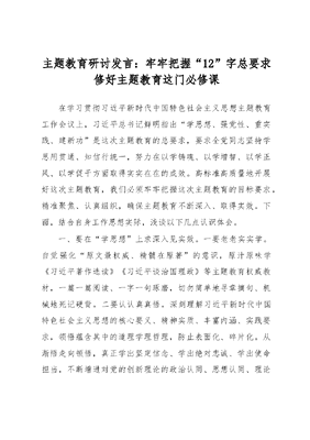 主题教育研讨发言:牢牢把握“12”字总要求 修好主题教育这门必修课.docx
